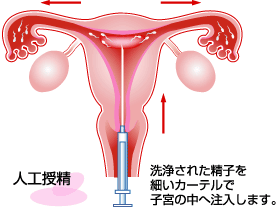 精子を子宮内へ直接注入し、卵子と精子が出会う確率を高める治療です。原精液を洗浄濃縮処理して、運動良好な精子を排卵日付近で子宮腔内へ注入します。